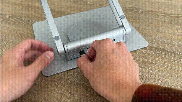 【HubStand Pro】は高さ・角度を自由に変えられるスタンドにUSBハブを搭載。さらにスマホも置ける、全てが揃ったドッキングステーションです。