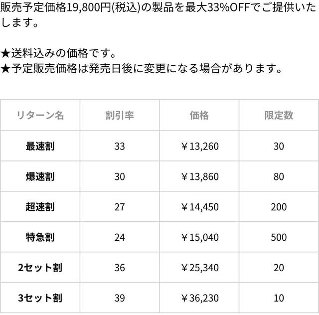 ※皆様の応援購入により量産効率が向上した場合、一般販売価格が変更になる可能性もございます。