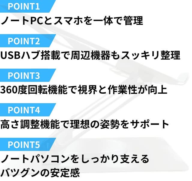 - 【快適】USBハブ&スマホスタンド搭載!全機能を一台に集約し作業効率を大幅向上