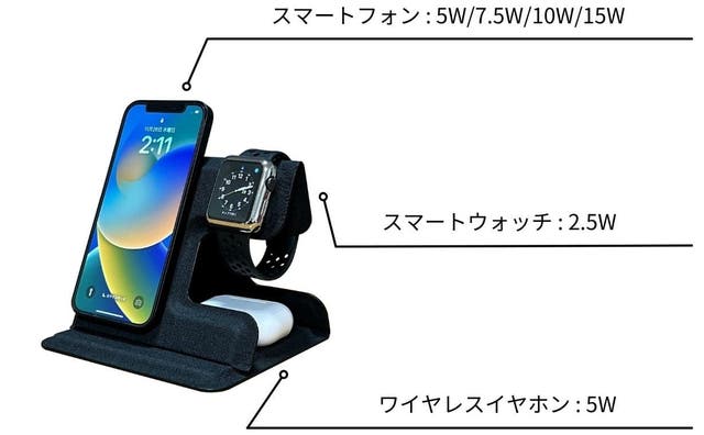- 3種デバイス同時充電を1台で実現。ワイヤレス充電に対応