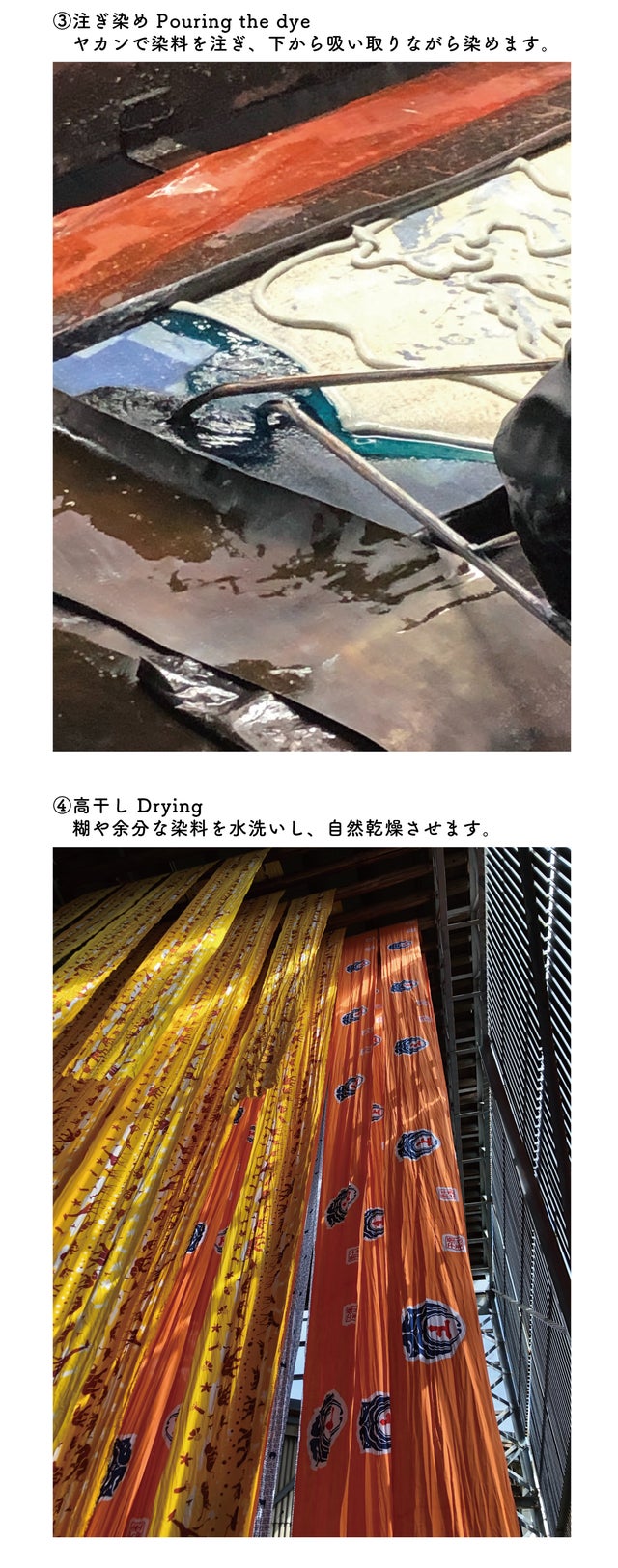 *染め方(注染染め)の特性上1枚1枚仕上がりが若干違うことがあります。