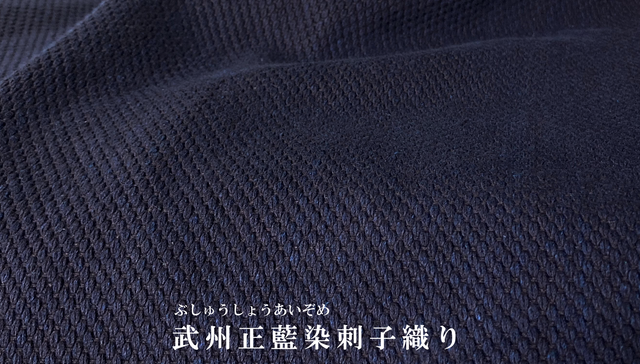 その中でもブランド藍染である武州正藍染刺子(ぶしゅうしょうあいぞめさしこ)生地を使用しております。