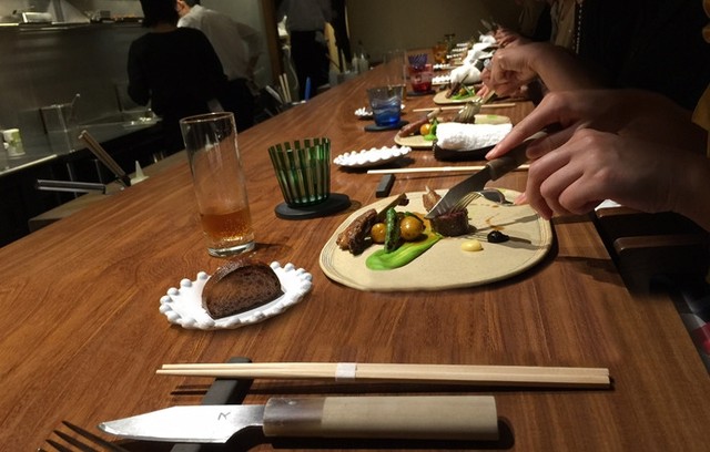 ◆去年、京都で人気のフレンチレストラン『料理屋ステファンパンテル』を訪れた時、なんとテーブルナイフに包丁が使われていました。そのミスマッチな感覚に驚き、同時に新鮮な印象を受けました。食材を最終的に口に入れるまで、切れないナイフで食材を損ねてはいけない。というシェフのポリシーからインスピレーションを受け、私のクリエイト魂に火が付きました。