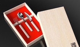 山口県萩市で作る杉の柾目板を使った白木の箱に収められた『和のカトラリー』セットです。底板には漆が施されたプレート(取り外し可)、包丁は岐阜県関市の刀匠の伝統を受け継ぐ関兼次(せきかねつぐ)。スプーンとフォークはカトラリーの名門、新潟県燕市の燕物産株式会社で製造します。和の伝統と、洋食に和のカトラリーを使う感覚がミスマッチで新鮮です。そんな『和のカトラリー』1セットをご支援いただいた方にお送り致します。(定価15,000円を予定しています。:税、送料別)