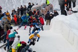 選手達は激しくぶつかり合いながら氷で作られた急斜面やウェーブ、時には大きな段差などをアイススケートで猛スピードで駆け抜けていきます。