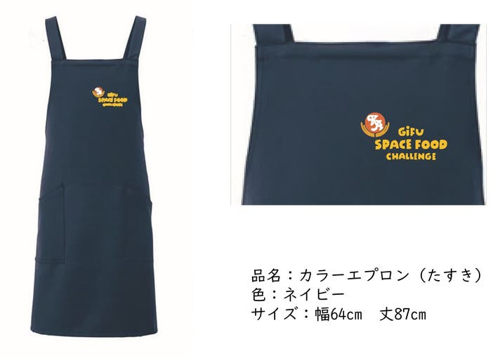 有限会社ケイ・エイ商事が贈るGifu Space Food Challengeオリジナルエプロンです。これを付けて岐阜県で進める宇宙日本食の認証を応援しよう!