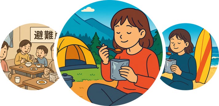 つまり、宇宙食は最近増えている災害時などの非常食として、ご家庭やオフィスなどにストックしておくことができます。