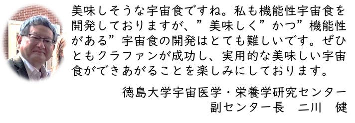 徳島大学宇宙医学・栄養学研究センター副センター長 二川健先生より応援メッセージを頂きました!