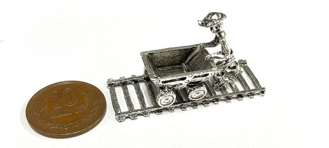 トロッコに宝石を山盛りに積んだガリンペイロのフィギュアと共に
