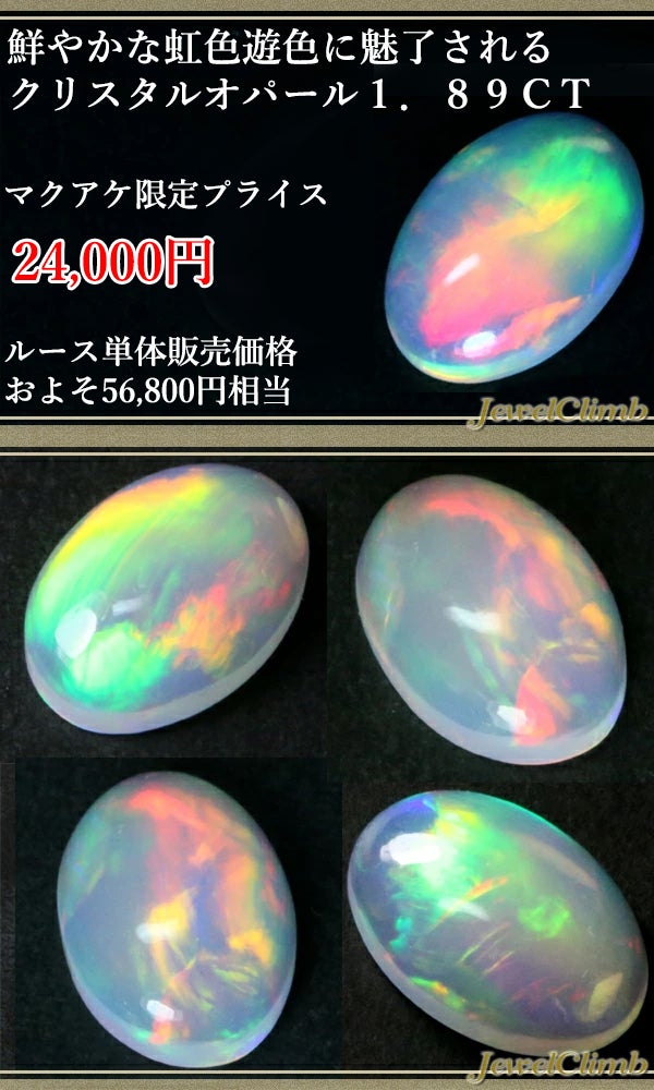 鮮やかな虹色遊色に魅了されるクリスタルオパール1.89CT