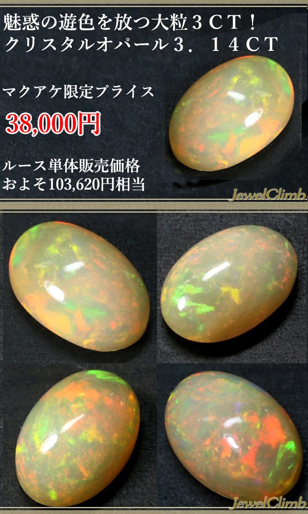 魅惑の遊色を放つ大粒3CT! クリスタルオパール3.14CT