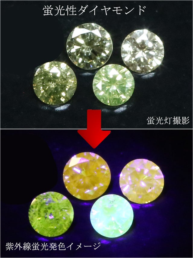 紫外線蛍光発色するダイヤモンドを