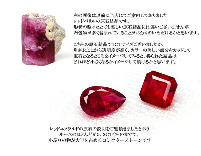 レッドベリル(レッドエメラルド)は基本的に小ぶりで