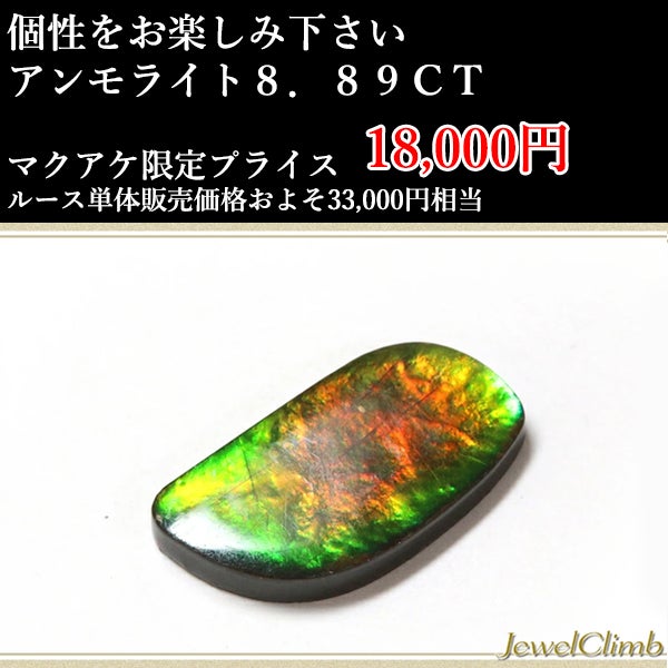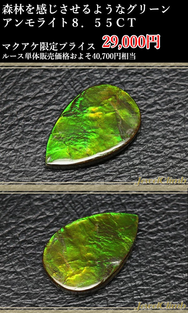森林を感じさせるようなネオングリーンが際立つ アンモライト8.55CT