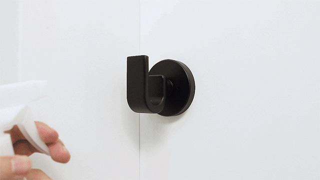 A. ジャビ(JAVI)はドアが開く方向に関係なく設置できるようにデザインされました。 ドア枠の方向に位置する穴に入れないとロックされませんので、参考にしてください。