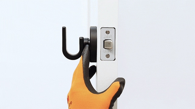 お部屋の内側にあるラッチフックに連結器をかけてください。