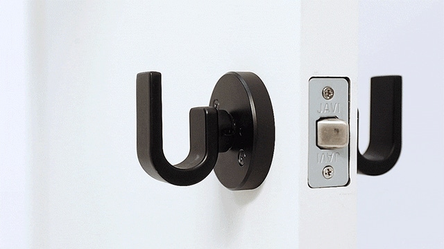亜鉛素材にマットブラックで塗装されたJAVIは、ホワイトからブラック、ウッド素材のドアなど色や素材にこだわらず、どんなインテリアにも馴染みます。