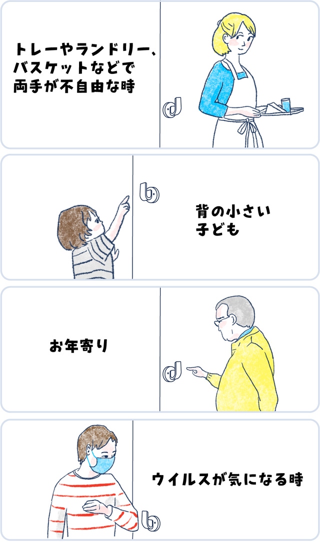 荷物を持っていても、腕や肘で軽く押せばOK!