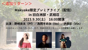 Jazztronik野崎良太と為岡そのみ(ボーカル)伊藤彩(バイオリン)の3人によるMakuake限定のプレミアライブにご招待