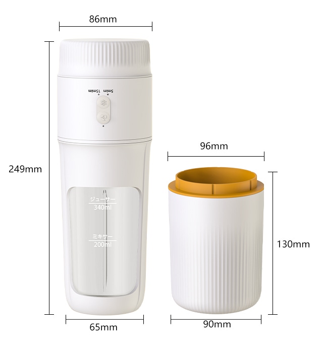 ※ 満電の状態で340mlのジュースを約11回(毎回40秒)絞り、200mlのアイスクリームを約3回(毎回15分)攪拌することができます。