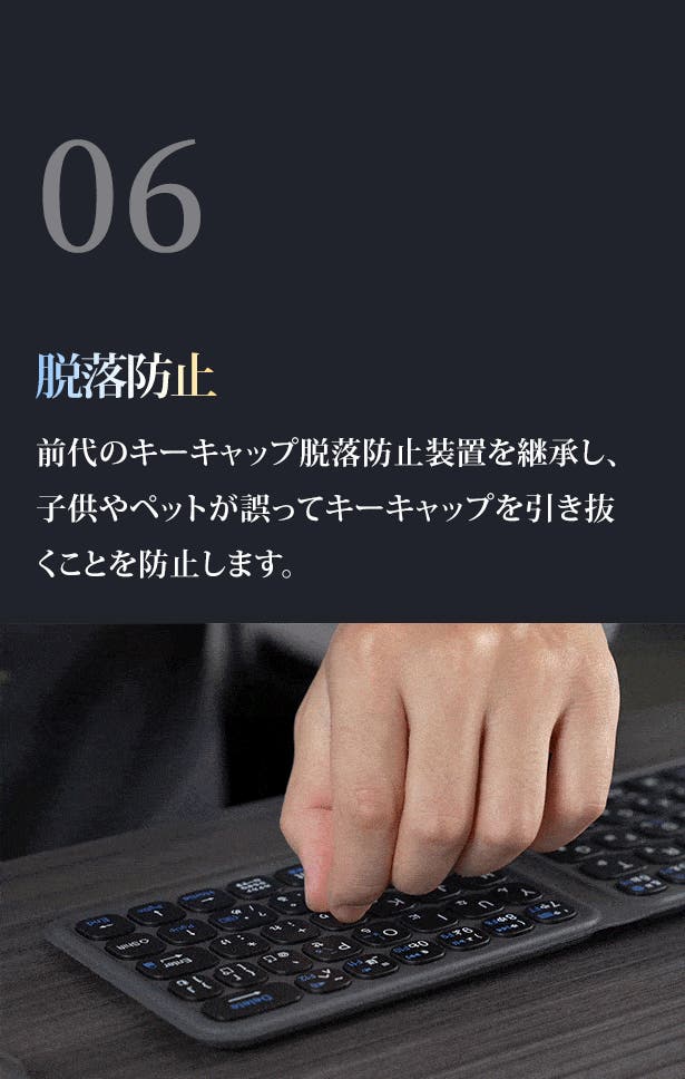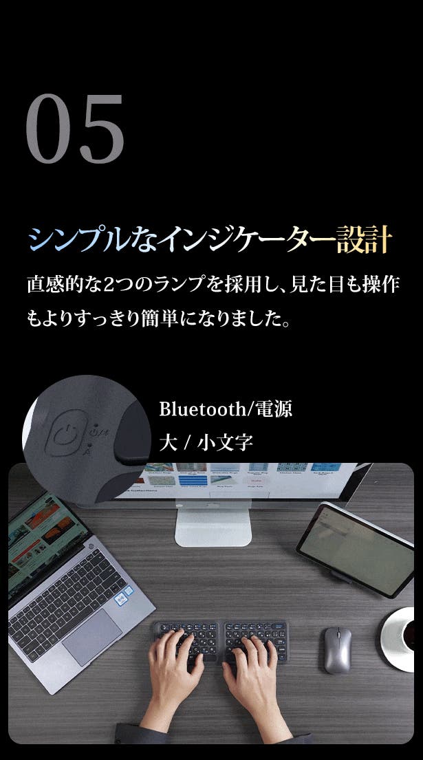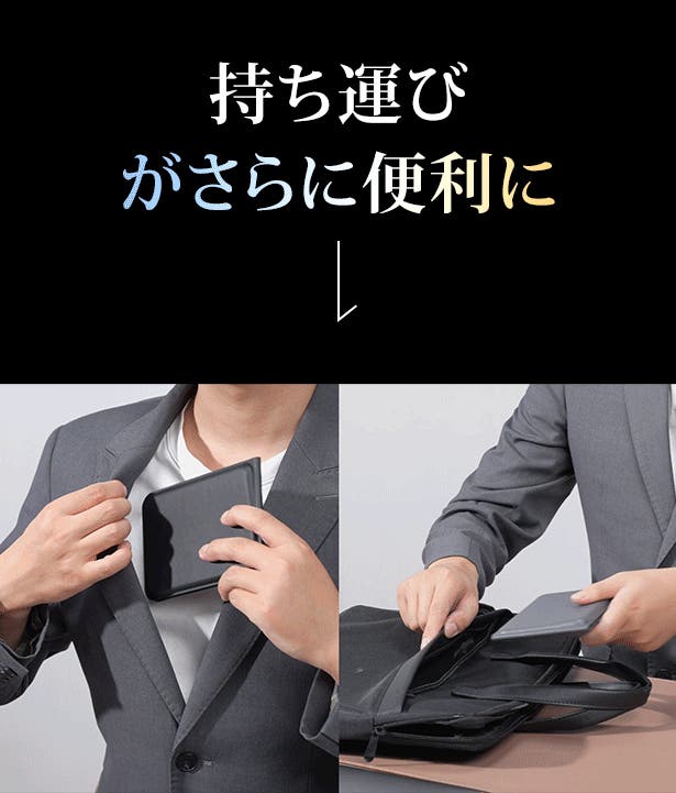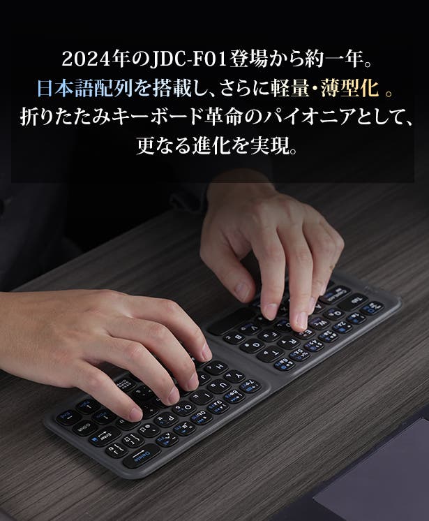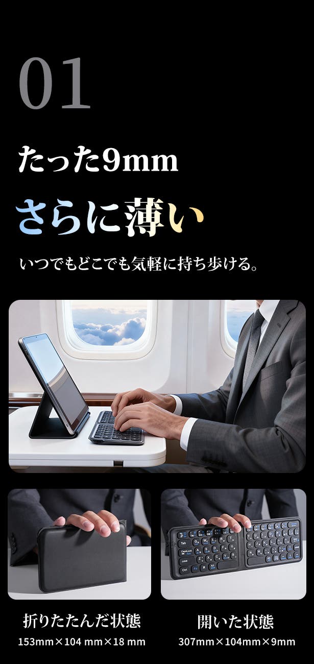 今回は日本のユーザーの使用感に合わせて配列を見直し、充電効率も大幅に向上させました。最新の急速充電技術を搭載することで、バッテリーの持続時間もさらに延びています。本体の厚さわずか9mm、軽量で、どこへでも持ち運びやすいです。