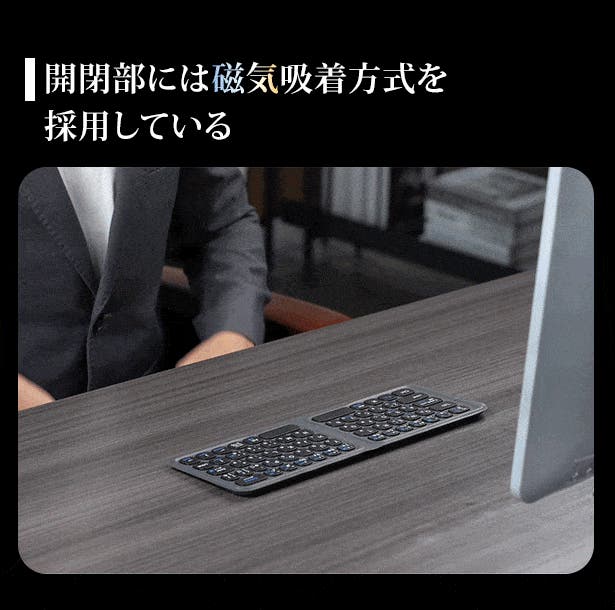 - 2つ折り畳み式設計、折り畳み部分がしっかりと閉じる磁気吸着タイプです。