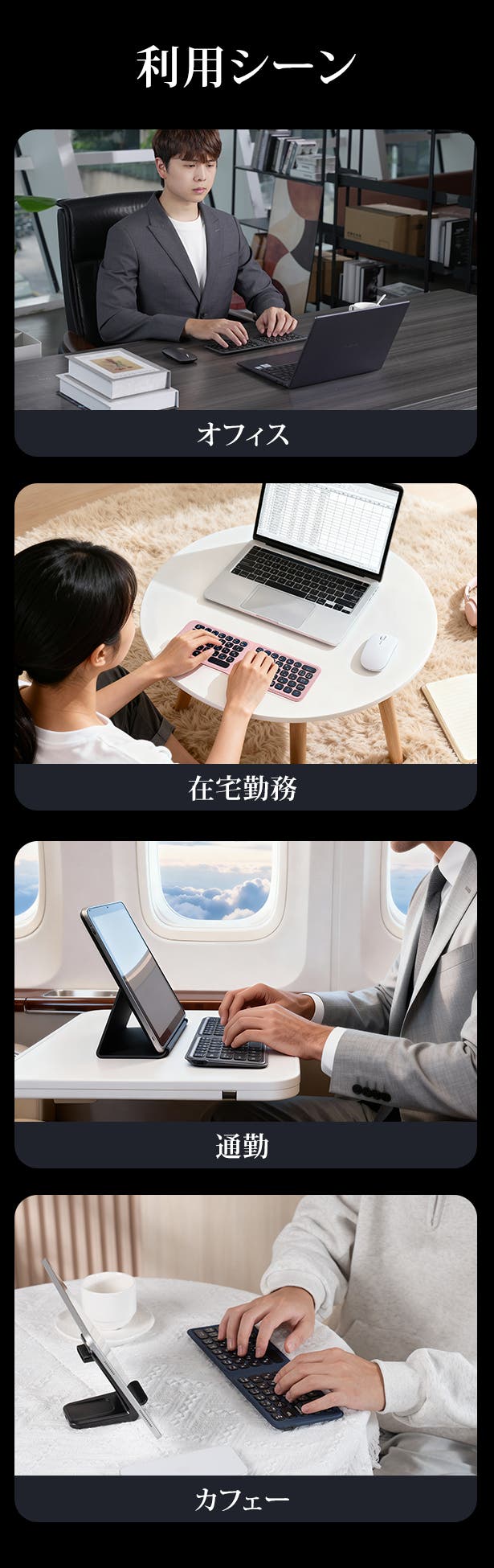 当社は主にタブレット用キーボード、ノートパソコン用キーボード、Bluetoothキーボード、折りたたみキーボード、ワイヤレスマウスを取り扱っています。