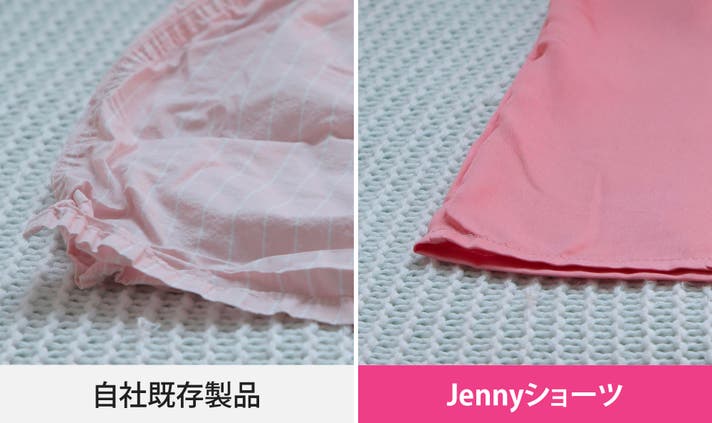 テンセル生地の内側に裏地を重ねた二重構造で、透けにくい仕様に。生地の内側にもう一枚の布を重ねることで、薄手素材でもショーツが透けにくい設計になっています。