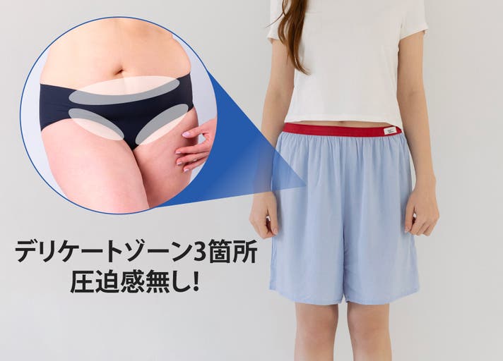 身体の構造に合わせた立体パターンで、不快感を軽減します。 4分丈の計算されたシルエットのちょうどいい長さで、家族の前でも気にせず過ごせます。 Tシャツやルームウェアと合わせれば、「宅配対応」「ゴミ出し」など、ちょっとした外出にも対応可能です。