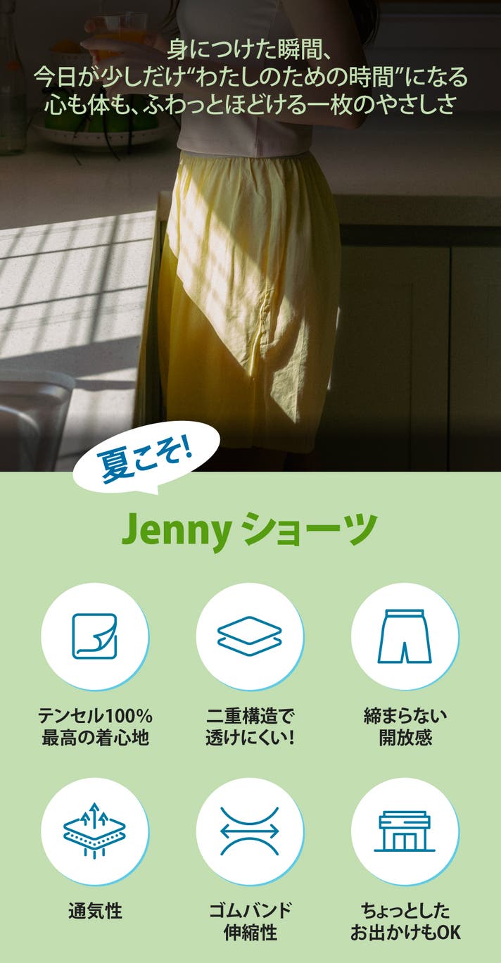 テンセル100%素材で、とろけるような肌ざわりのため素肌に触れた瞬間から、ふんわりやさしい生地感を体験できます。さらっと気持ちの良い着用感で夏にぴったりな4分丈ショーツです。