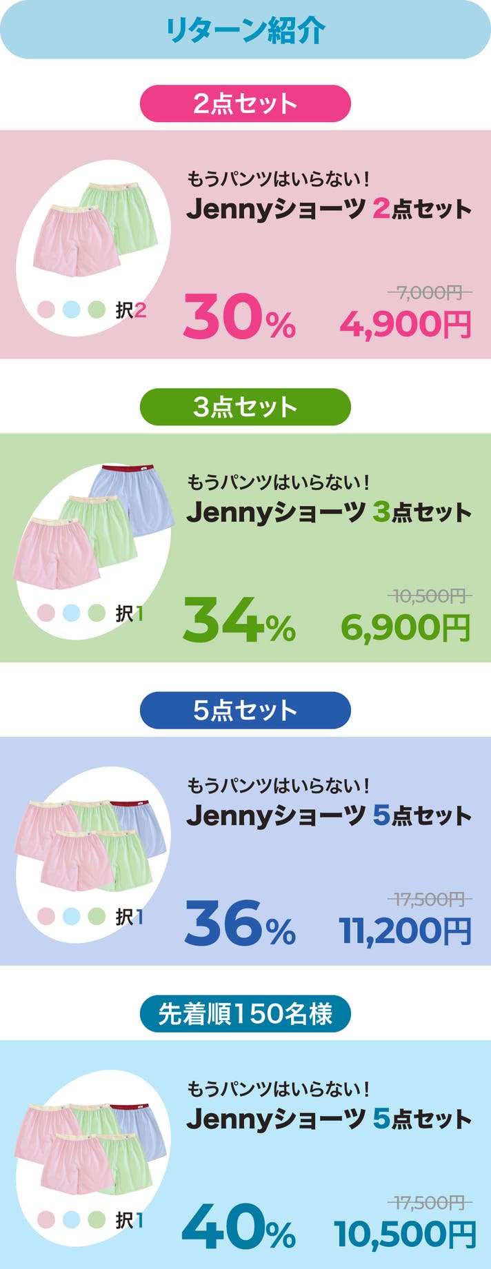 【先着150名様】もうパンツはいらない!Jennyショーツ5点セット
