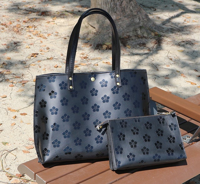 濡れた様な光沢の特殊印刷を施した国産本牛革トート&セカンドバッグです。桔梗紋をあしらったシックなデザインに仕上げています。ペアでご使用頂けるよう仕立てました。トートバッグのデザインは「桔梗紋」か「飛翔+龍」をお選び頂けます。