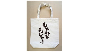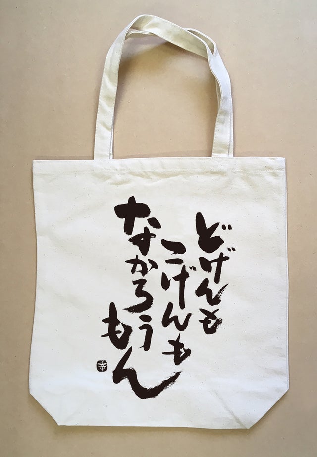 同じくトートバッグも国崎幸子の書で博多弁をデザインしたものです。