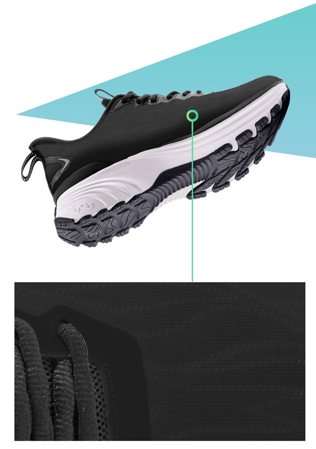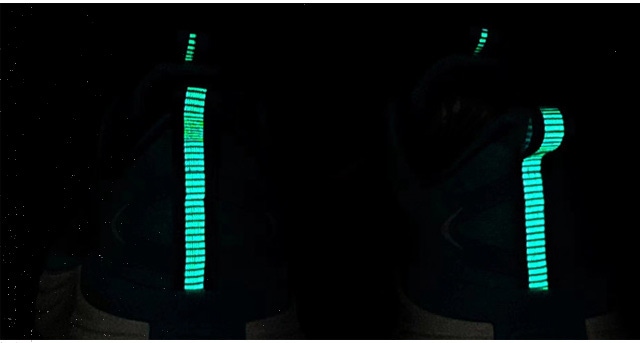 夜間でも安心の「ナイトランウェーブストリップ」搭載。(踵部分の一部が夜間発光します。