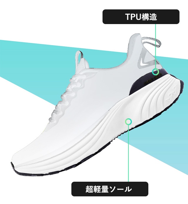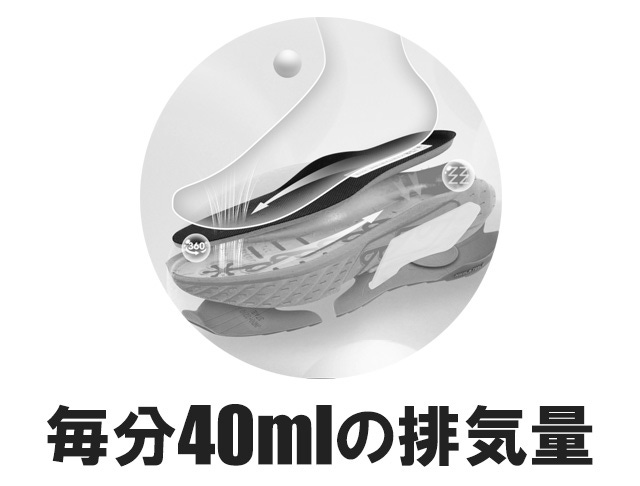 - シューズ内の湿った空気が圧力調整により簡単にシューズ外へ排出される「ジェット換気システム」搭載