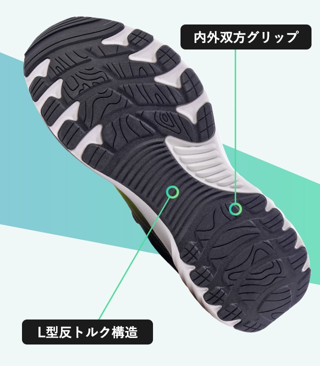 アウトソールは耐摩耗に優れ、滑り止め設計がされています。