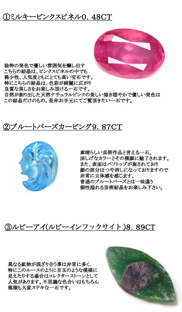 人気のミルキースピネルを中心に面白いルースを3点セットに致しました!