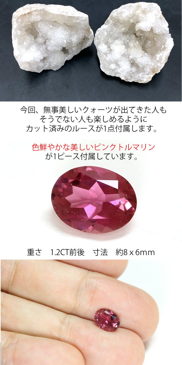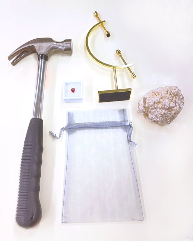 内容物 ハンマー・原石・ディスプレイスタンド・ピンクトルマリンルース・原石を割る際に利用する袋 etc...となります。