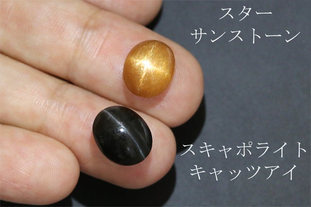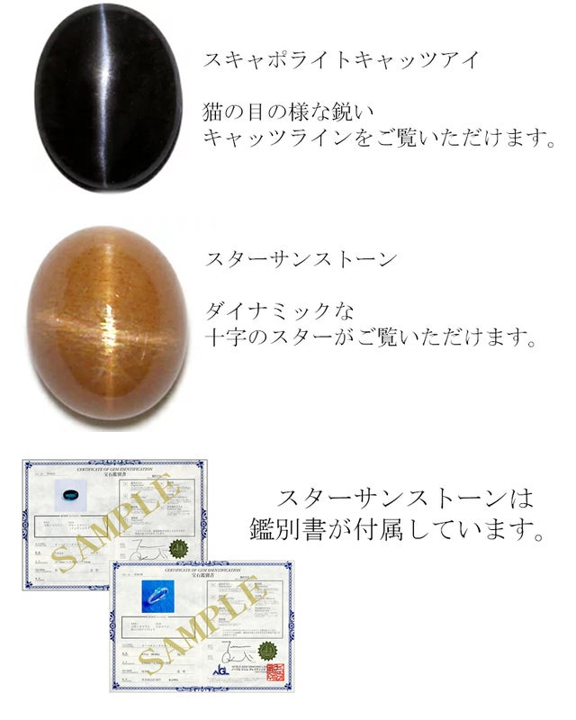 スキャポライトキャッツアイ&スターサンストーン(宝石鑑別書付き)セット
