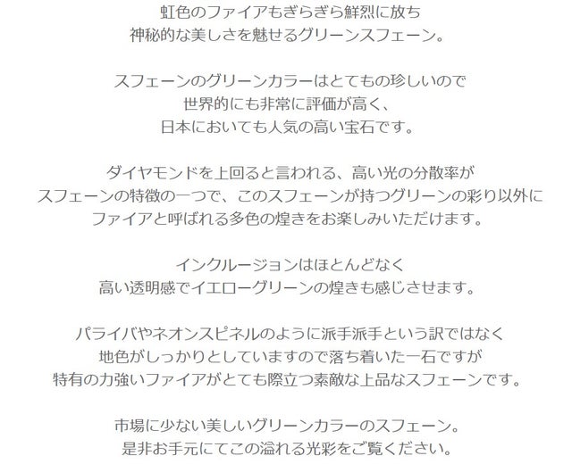 キラキラと輝く希少石グリーンスフェーン2.30CT