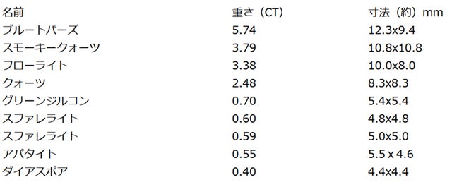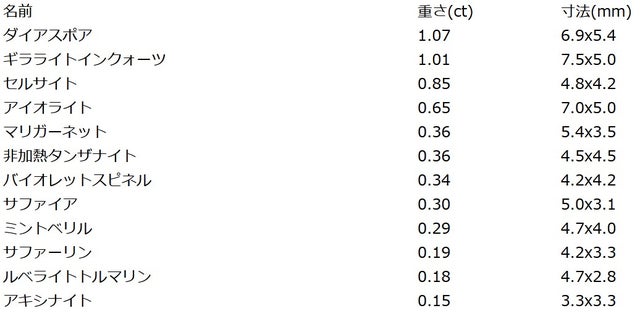 ダイヤモンド、アウイナイト、フローライト、スピネル・・・