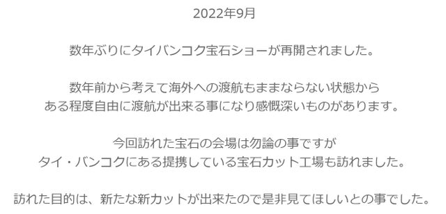 宝石の国であるタイでは宝石の流通がストップし様々な宝石に関する事業が危機に瀕しており、また世界的にも原石の供給がストップしています