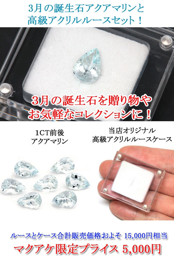 3月の誕生石アクアマリンと当店オリジナル高級アクリルルースケースセットです。