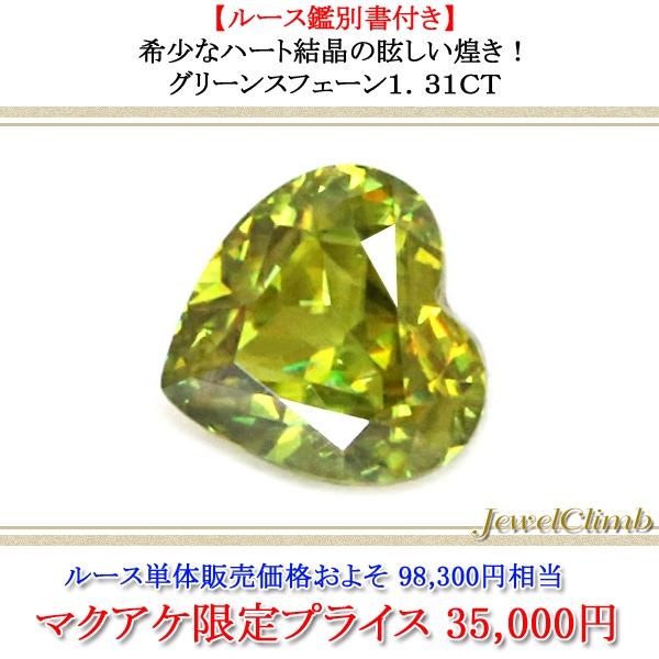 とても珍しいハート!グリーンスフェーン1.31CT