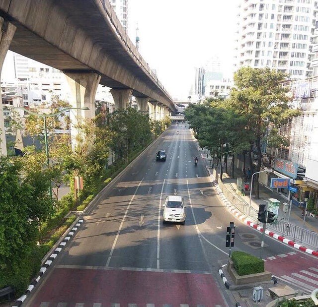 バンコク市内の様子 自動車+バイクがほとんどいない状態です。。