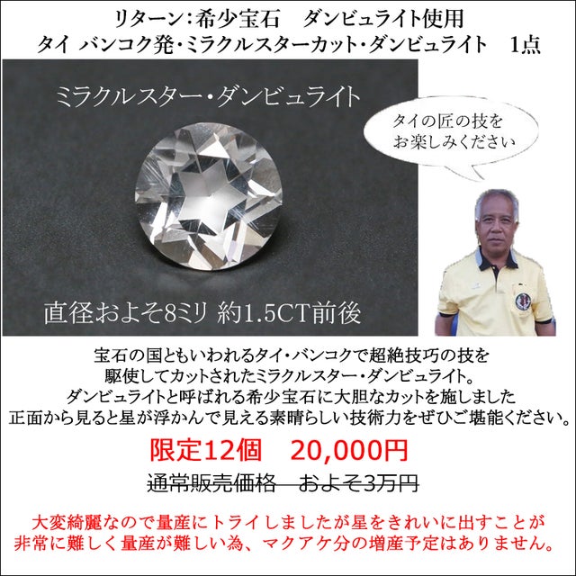 増産困難な為、限定12・ミラクルスター・ダンビュライト単品(鑑別書つき)