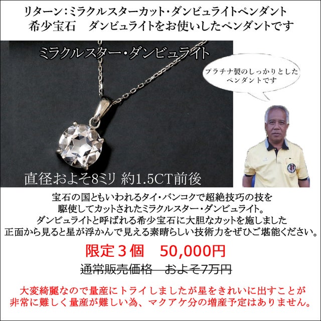 増産困難な為、限定3 ミラクルスター・ダンビュライトペンダント