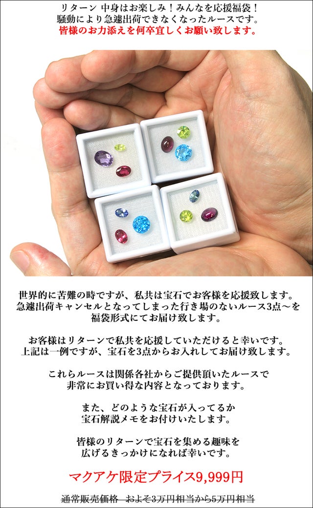 「Makuake(マクアケ)」は、実行者の想いを応援購入によって実現するアタラシイものやサービスのプラットフォームです。このページは、 プロダクトカテゴリの 「makuake第三弾!不況で揺れる宝石ルース業界を盛り上げたい!」プロジェクト詳細ページです。