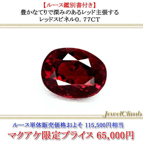 ◇レッドスピネル:0.77CT 4.61x6.03x3.43mm