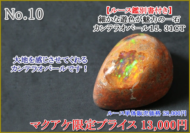 カンテラオパールはメキシコオパールの母岩付きのルースでメキシコオパールと同じく美しい遊色が魅力的な宝石です。まさに大地から遊色が顔を出しているような一石。